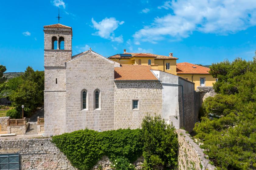 Am Glagolitischen Platz (Trg glagoljaša) in der Stadt Krk befinden sich das Kloster und die Kirche des Hl. Franz. Diese werden in verschiedenen Niederschriften erwähnt, beginnend im 13. Jhdt. Das Kloster wurde, laut einer Legende, gegründet, nachdem der Hl. Franz in Krk vor dem Unwetter Schutz suchte und einen Einsiedler kennenlernte, welcher seine Lehren übernahm und den Franziskanerorden begründete. Das Bild der Muttergottes mit Kind von Vittore Carpaccio, einem italienischen Renaissance Maler, wird im Kloster aufbewahrt. Die Kirche des Hl. Franz wurde im gotischen Stil im 13. Jhdt. erbaut. In der Sakristei der Kirche wurden Überreste einer Freske gefunden, welche älter als der Rest des Bauwerks ist. Dies weist darauf hin, dass das heutige Bauwerk durch einen Umbau der älteren Kirche entstanden ist. Eine der Sehenswürdigkeiten an der Kirchenwand ist auch die Abbildung eines venezianischen geflügelten Löwen aus dem 13. Jhdt. Der Löwe hat ein geschlossenes Buch, was ein Zeichen dafür ist, dass sich Venedig damals im Krieg befand. Die Zisterne mit Kreuzgang, getränkt mit Regenwasser, wurde im Jahr 1625 erbaut, und der Glockenturm der Kirche wurde im Jahr 1743 fertiggestellt.