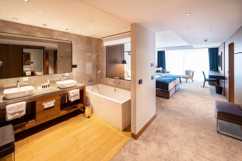 bett 200x220 cm, zusätzliche Polster, zusätzliche Bettwäsche, Regulierung der Beleuchtungsstärke, Telefon, Heizung, Klimaanlage, LCD TV, Satellitenprogramme, Arbeitstisch, Stuhl, Sofa, Armsessel, Garderobe, Schrank, Minibar, bereich zum abstellen der koffer, Safe , bademantel, hausschuhe, handtücher für den Strand, Wasserkocher, Zusatzliege , Kinderbett, Nähzubehör