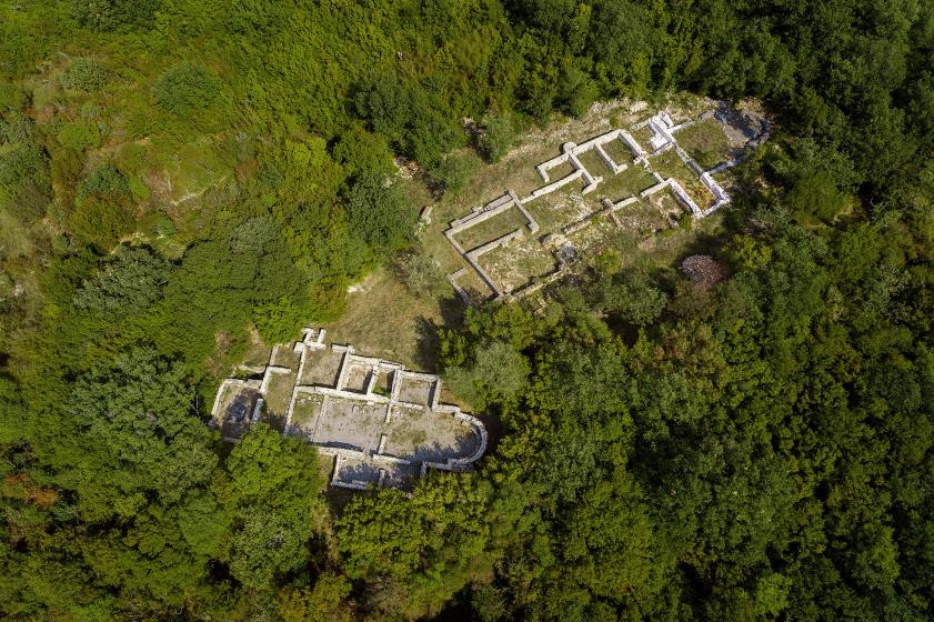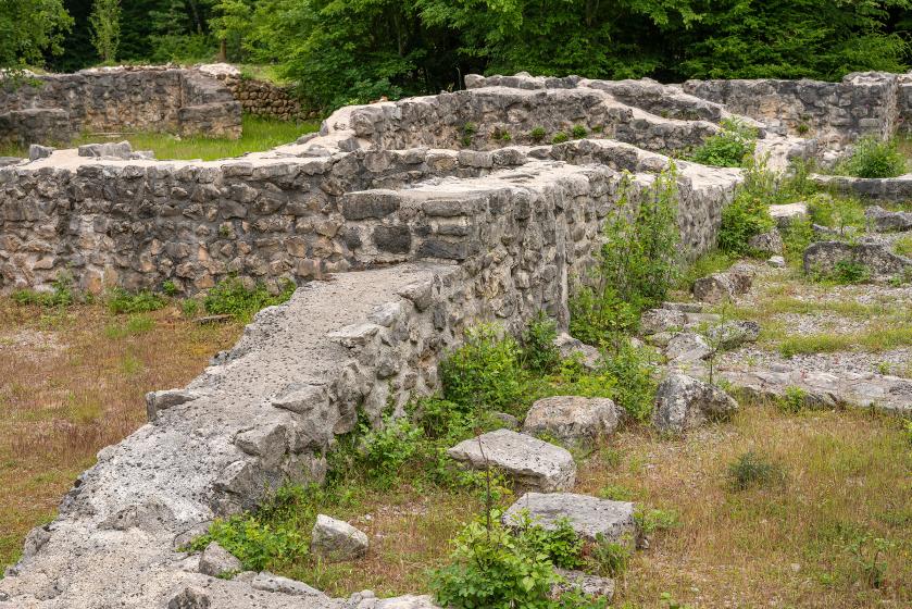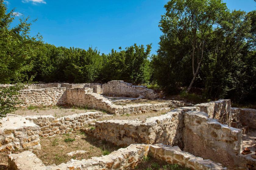 There is a church and the remains of several facilities within the complex with the baptismal font of particular note. During research that only began in 2002, a number of remains were discovered, such as the 5th century chapiter of a beam carrier of the altar rail and the 6th century part of the board from the altar rail.