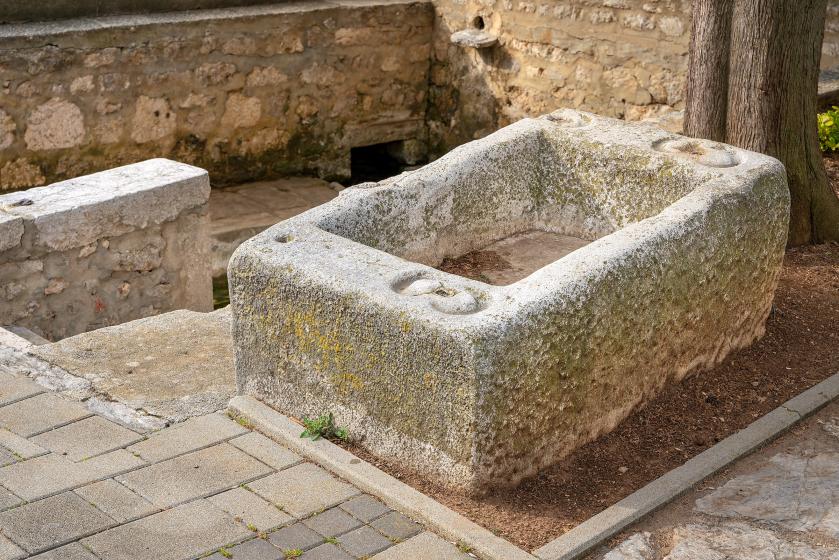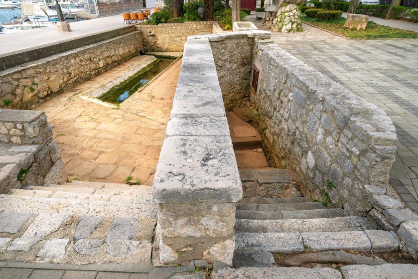 Naziv Krušija potječe od talijanskog izraza „corso“ što znači tijek. Na ovome mjestu nalazi se zdenac koji je služio kao izvor pitke vode i perilo na kojem su krčanke dolazile prati robu. U prošlosti je Krušija služila i kao mjesto okupljanja.